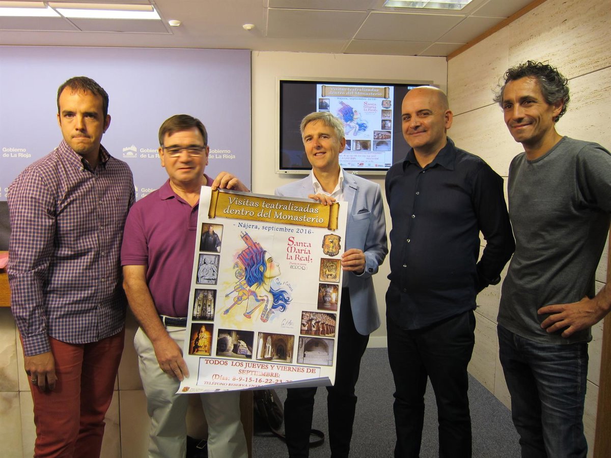 El director general de Cultura y Turismo, Eduardo Rodríguez Osés, ha presentado esta mañana en rueda de prensa junto al secretario de Patronato de Santa María La Real de Nájera, Joaquín García Sáez, el alcalde de Nájera, Javier Olarte, y un miembro de 'Sapo producciones', Martín Nalda, las rutas teatralizadas del Monasterio de Santa María La Real que tendrán lugar durante el mes de septiembre.