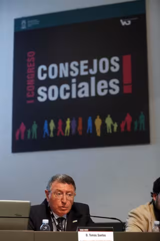 El alcalde de Logroño, Tomás Santos, ha participado esta mañana en el I Congreso Nacional de Consejos Sociales que se está celebrando en Vitoria. En su intervención ha destacado la puesta en marcha de 'Logroño 2010 Capital de las Personas', la creación de los 'Voluntarios de Logroño' y iniciativa 'Cine de Mayores'.