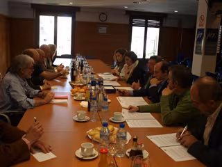 El candidato socialista a la alcaldía de Logroño, Tomás Santos, acompañado por varios miembros de su candidatura municipal, ha mantenido una extensa reunión con la Junta Directiva de la Federación de Empresarios de La Rioja, en la que ambas partes se transmitieron las inquietudes sobre la ciudad y el futuro de la misma.