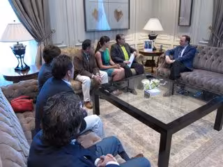 El presidente del Gobierno riojano, Pedro Sanz, ha desvelado al Colegio Oficial de Aparejadores el interés de empresas por realizar obra pública en La Rioja para los años 2014-2015, según ha apuntado a los medios de comunicación el presidente del Colegio Oficial de Aparejadores de La Rioja, Fernando Gómez.