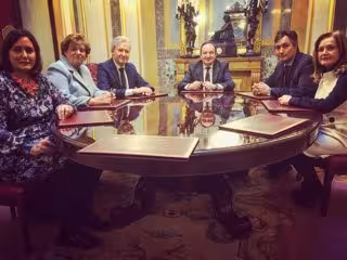 "Creo que a partir del 5 de marzo tenemos una oportunidad extraordinaria de formar una gran coalición de un Gobierno estable, respetando los deseos que plasmaron los españoles el pasado 20 de diciembre", ha añadido Pedro Sanz.