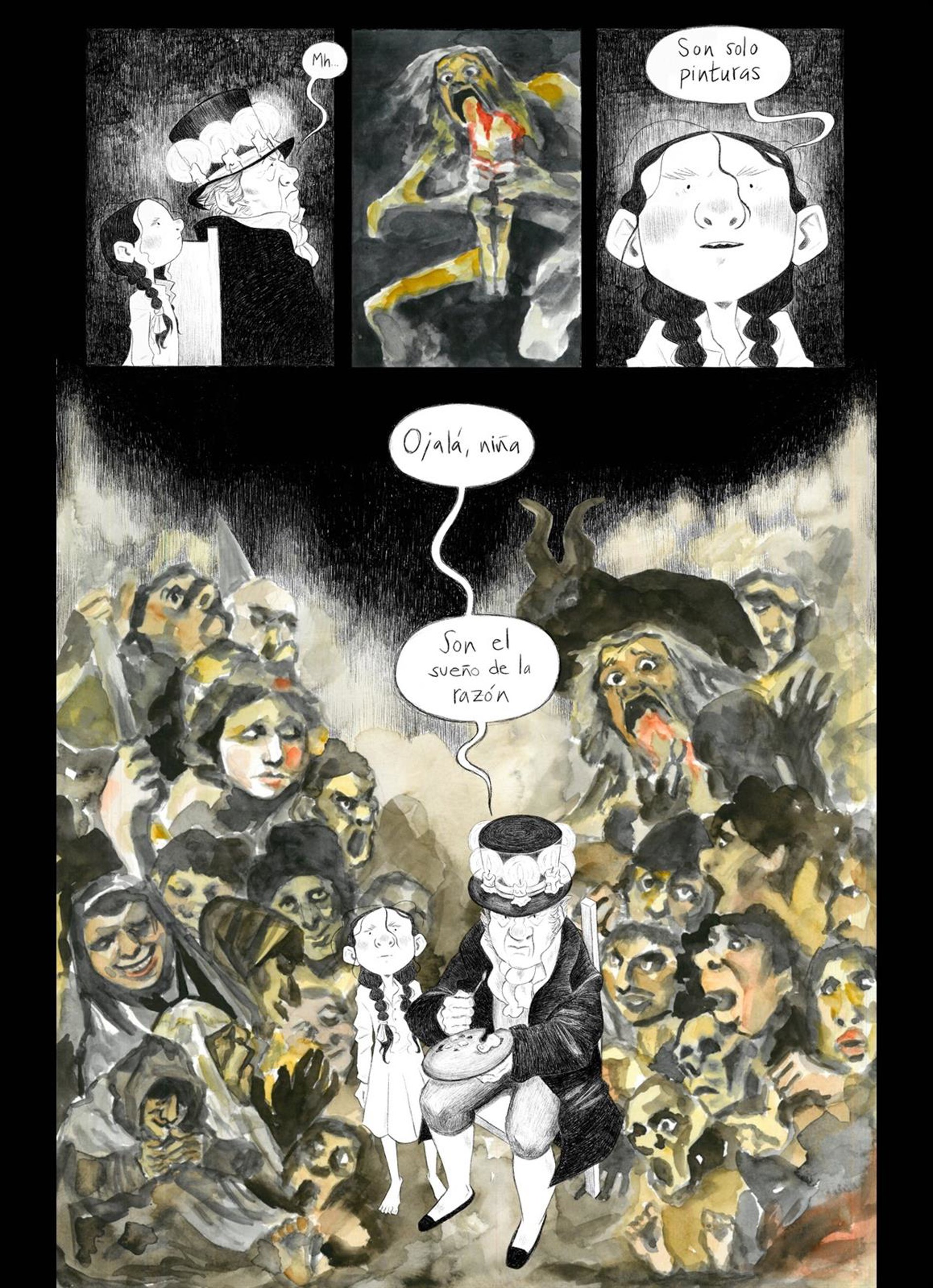 También resalta el perfecto recorrido que los autores realizan por la biografía de Francisco de Goya, donde exprimen las posibilidades narrativas del cómic y crean un ameno y educativo paseo sobre los grandes hitos de la vida del pintor aragonés.