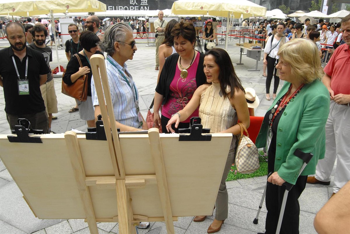 La vicepresidenta y consejera de Turismo, Medio Ambiente y Política Territorial, Aránzazu Vallejo, ha inaugurado en la plaza central del pabellón español una exposición de arte con obras de los artistas participantes en el programa de residencia de artistas España-China de la Galería Arteaga, con sede en Logroño.