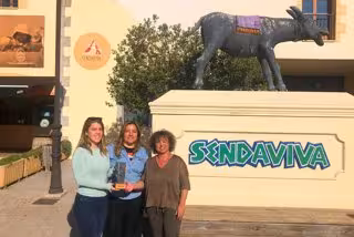 Verónica Larrumburu, fundadora de PA-community.Com (centro), hace entrega del premio a Vanessa Azcárate, directora del Departamento de Marketing de Sendaviva (i), y a Ana Marta Torres, directora ejecutiva del parque (d) - SENDAVIVA