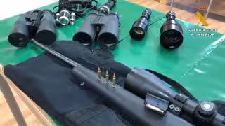 Tras intervenir el arma los agentes procedieron al registro del vehículo hallando en su interior munición, dos binoculares, dos linternas de largo alcance y dos linternas de cabeza.