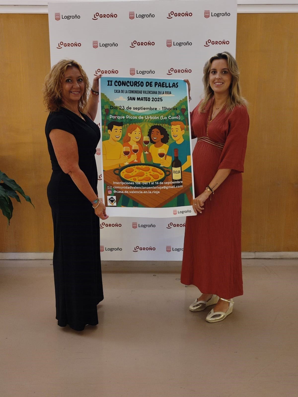 La concejala de Festejos, Laura Lázaro, y la presidenta de la Casa de la Comunidad Valenciana en La Rioja, Mar Luna, han presentado esta mañana la segunda edición del Concurso de Paellas que organiza esta entidad con motivo de las fiestas de San Mateo, en colaboración con la Asociación de Vecinos de La Cava.