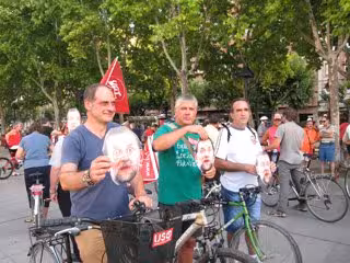 Una original forma de protestar, en bicicleta, que los tres sindicatos convocantes han hecho coincidir con las dos etapas en las que la Vuelta Ciclista a España visita La Rioja. En la manifestación ha partido desde la plaza del Ayuntamiento de Logroño, se podían leer carteles que decían 'Señor Rajoy, yo también quiero darle la vuelta a España'.