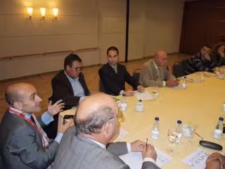 El presidente de la FER, Julián Doménech, acompañado por el secretario general, Emilio Abel de la Cruz, y los secretarios sectoriales se han reunido con un empresarios de Arnedo y comarca para conocer las expectativas de las pymes de la comarca.