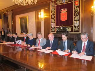 También han suscrito el convenio José Marqueta, delegado general de Aragón, Navarra y La Rioja de Caixa Bank; el director del Área de Empresas en Navarra de Caja Laboral, Mikel Aguirrezabal; el director del Área de Negocio de CAN-Banca Cívica, Joaquín Arbeloa, y el responsable del Área de Empresas de Caja Rural de Navarra, Juan Mari Ayechu.