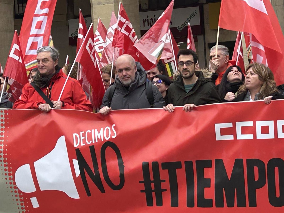 Sordo ha participado, en la mañana de hoy, en una concentración sindical frente a la Federación de Empresas de La Rioja organizada para "llevar a la calle las reivindicaciones sindicales".