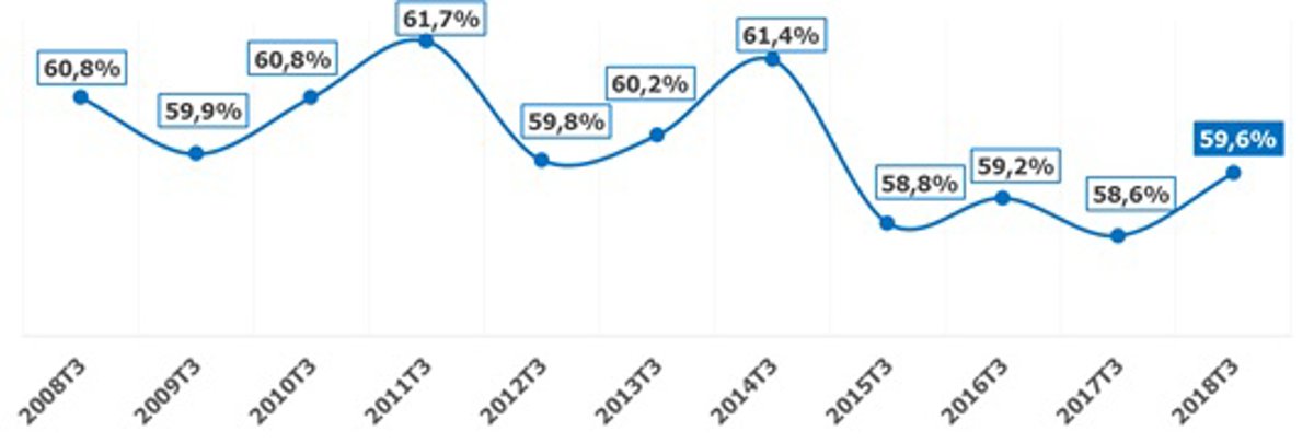 El estudio destaca que la tasa de actividad en La Rioja se sitúa en el 59,6 por ciento en 2018 y registra el cuarto índice más bajo de los últimos diez años. Este dato supone un aumento de 1 punto porcentual respecto a la cifra del año anterior.