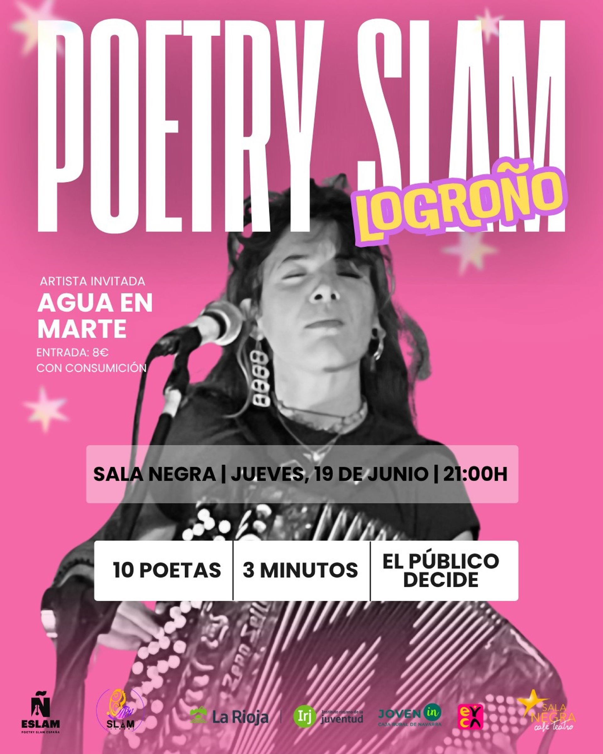La temporada de Poetry Slam Logroño llega a su fin el 19 de junio con el grupo 'Agua en Marte' - POETRY SLAM LOGROÑO