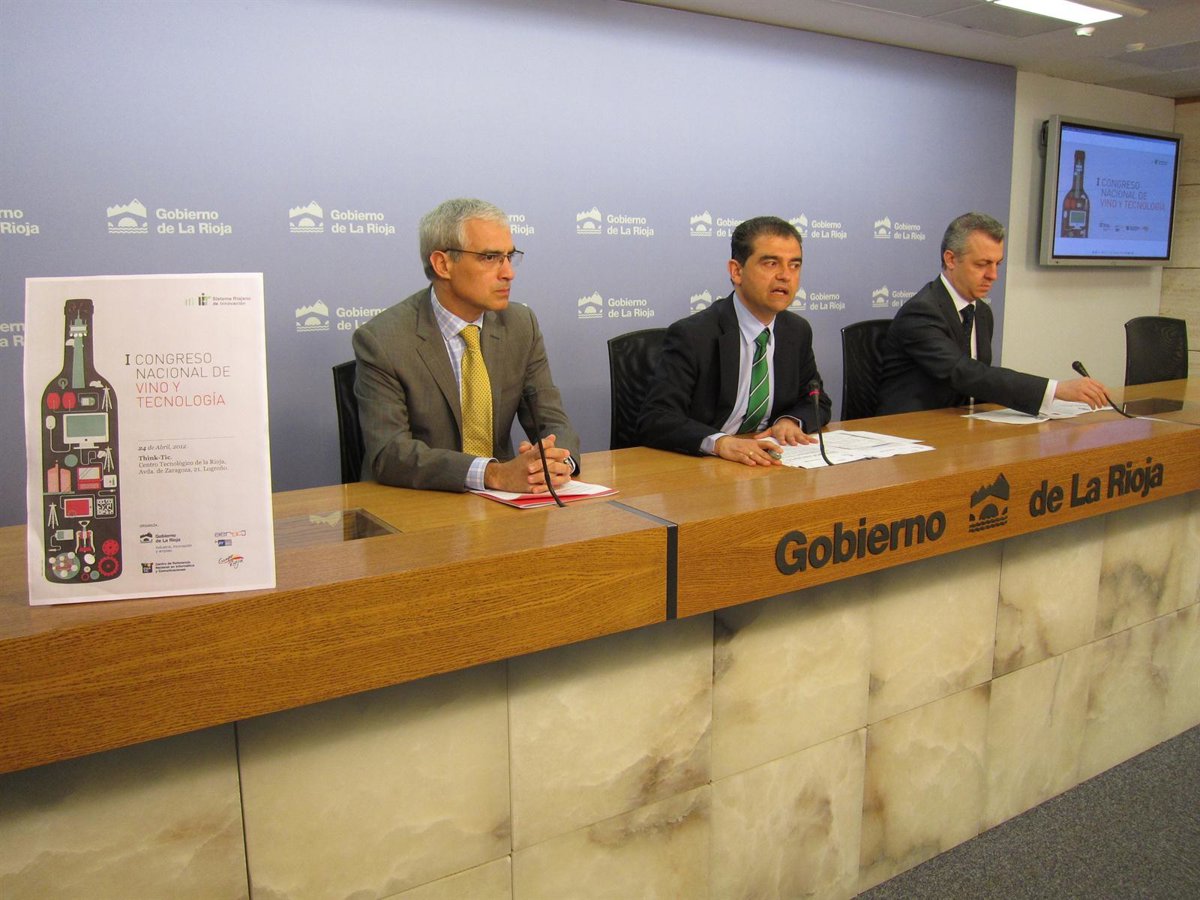 El director general de Innovación, Industria y Comercio, Julio Herreros, junto con el presidente de la Asociación de Empresas Riojanas de Tecnologías de Información y la Comunicación (AERTIC), Jesús Hijazo, y el director general del Grupo Rioja, José Luis Benítez, han presentado esta mañana el I Congreso Nacional de Vino y Tecnología, que se celebrará en la sede del Centro de Referencia Nacional en Informática y Comunicaciones (Think TIC) el próximo 24 de abril.