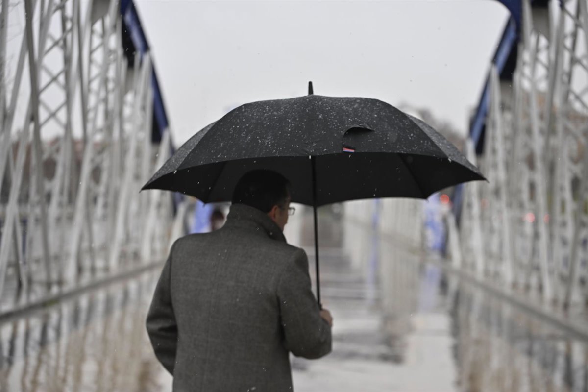 Archivo - Una persona se cubre de la nieve con un paraguas, a 19 de enero de 2024, en Zaragoza, Aragón (España). - Marcos Cebrián - Europa Press - Archivo
