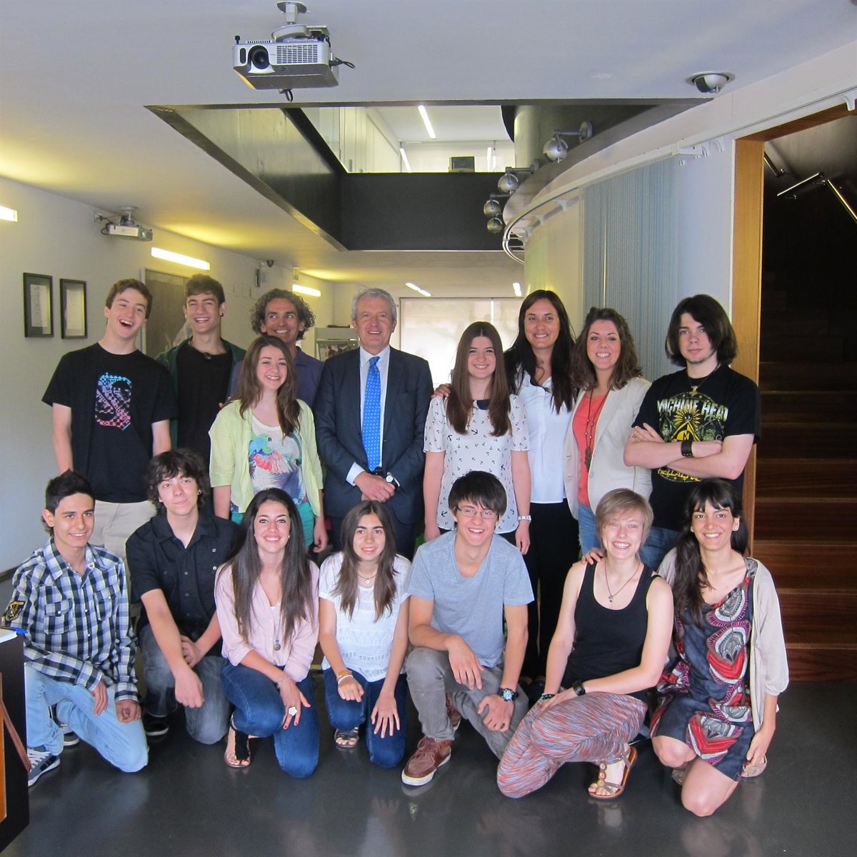 El consejero de Presidencia y Justicia, Emilio del Río, ha recibido un grupo de jóvenes riojanos que participarán, los próximos días, en un encuentro artístico internacional con jóvenes de escuelas de teatro de cuatro países: Inglaterra, Polonia, Alemania y España.