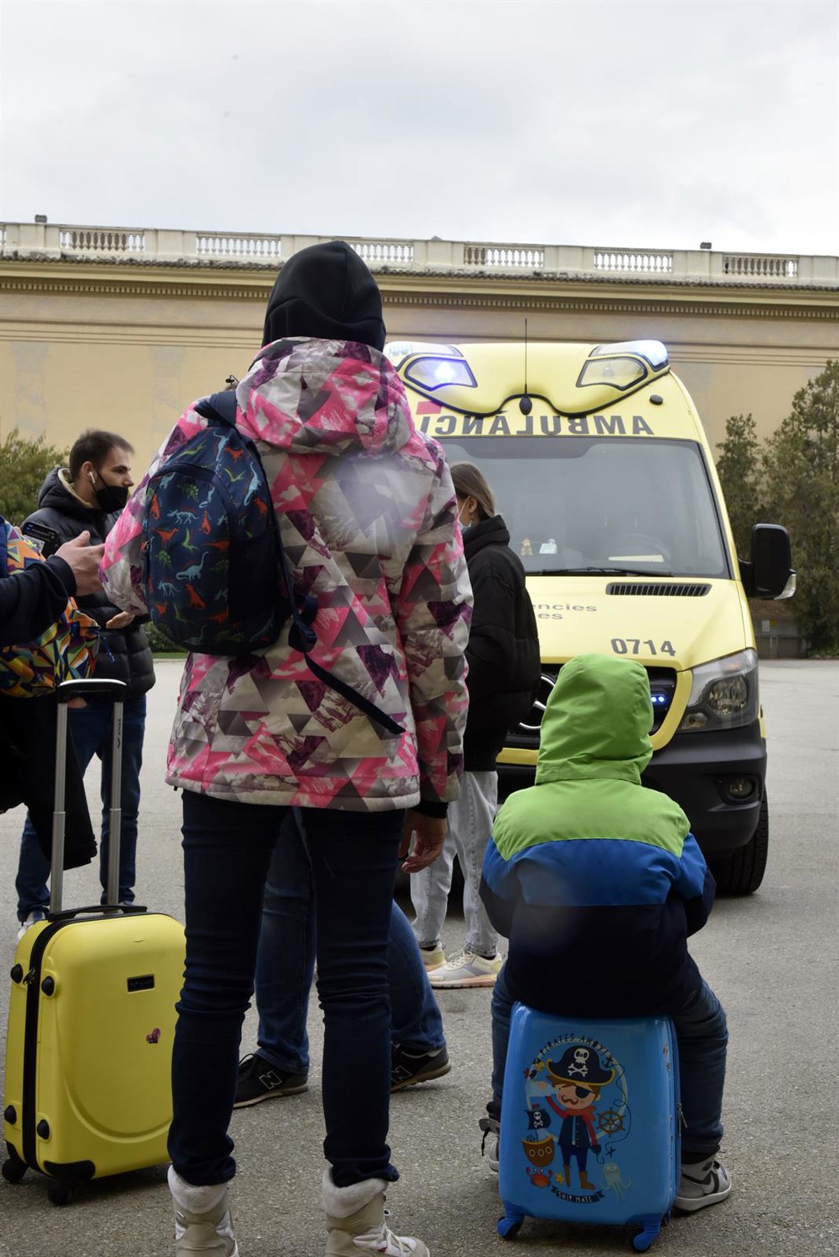 Varios refugiados, junto a una ambulancia - David Oller - Europa Press