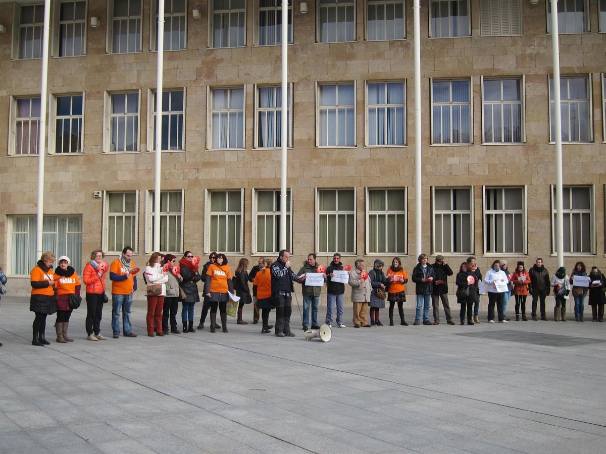 La plaza del consistorio logroñés ha sido el lugar escogido por las trabajadoras de la empresa de ayuda a domicilio para dar a conocer la situación actual de la cooperativa que, como reconocen, "lleva bastante tiempo con el pago atrasado de las nóminas de las contratadas y a las socias se les deben tres mensualidades".