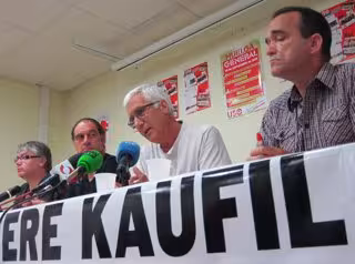 Un total de 19 trabajadores de la empresa 'Kaufil' han protestado esta mañana porque "llevan 6 meses sin cobrar" las correspondientes mensualidades de sus prejubilaciones, tras el ERE aprobado en dicha empresa en 2007. Este caso de impago, el primero de estas características en España, se produce porque la empresa belga que aseguraba a 'Kaufil', y que debía abonar el dinero, se ha declarado en quiebra.