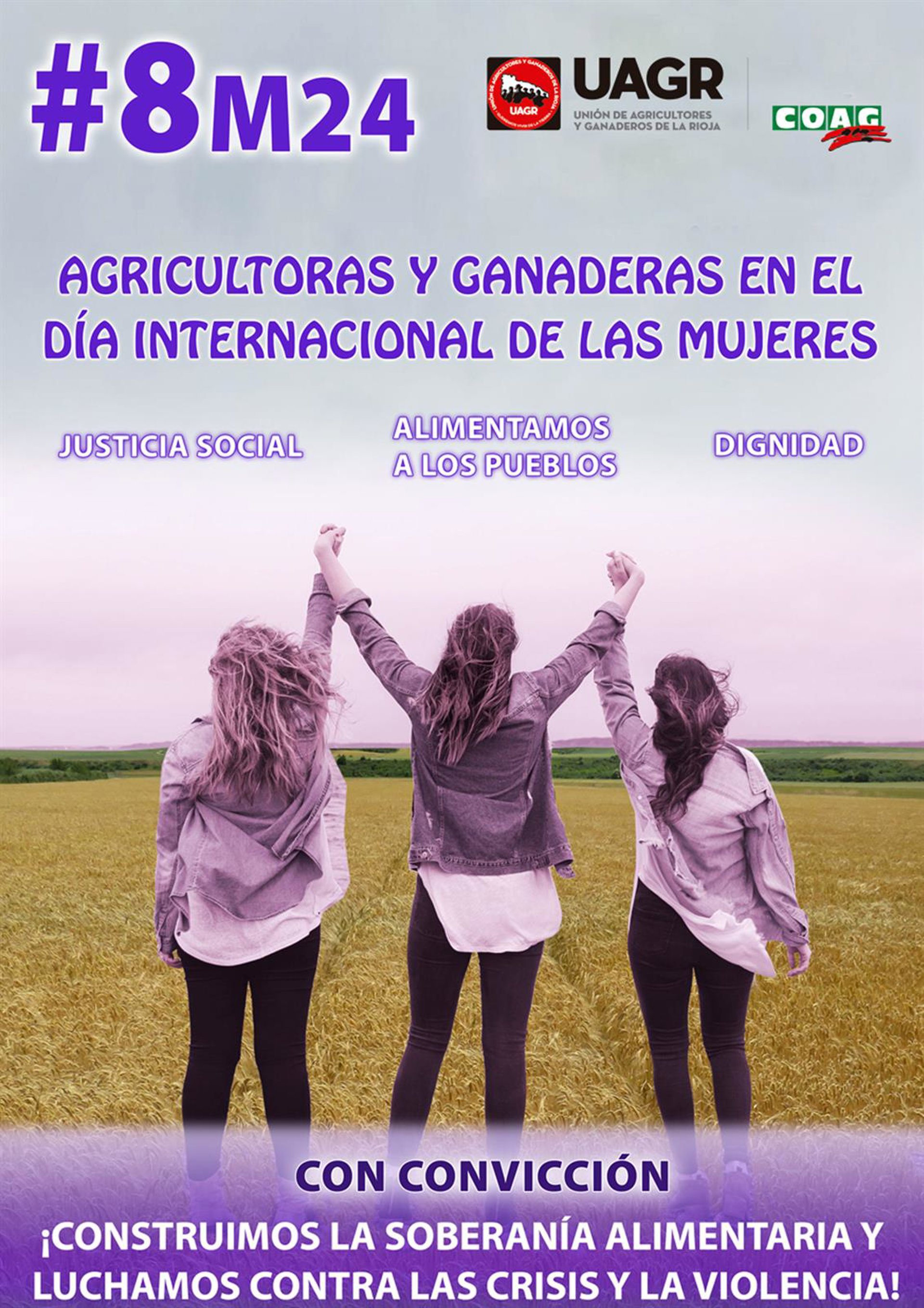 Además, en este 8M, el Área de Mujeres de la Unión quiere visibilizar las demandas de las mujeres agricultoras y ganaderas en el proceso de movilizaciones y negociación que se está dando ante la UE, Ministerio de Agricultura y Gobierno de La Rioja.