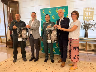 La Unidad de Acción Rural (UAR) de la Guardia Civil presenta este domingo en la plaza del Ayuntamiento de Logroño el evento solidario UAR-Gladiator Race. En la presentación de esta iniciativa han participado este miércoles el alcalde de Logroño, Pablo Hermoso de Mendoza, el coronel de la UAR de la Guardia Civil, Francisco Javier Molano Martín, y el concejal de Deportes, Rubén Antoñanzas.