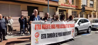 Los concentrados, que han guardado un minuto de silencio, rotos por aplausos, lo han hecho bajo una pancarta en la que se podía leer 'Otra muerte más por accidente laboral. Esta también se podía haber evitado'.