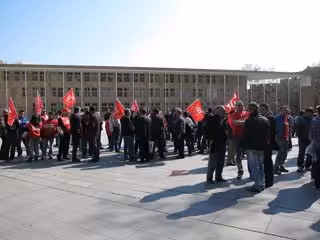Miembros de ambos sindicatos se han concentrado a partir de las 11 de la mañana, y por espacio de algo más de media hora, en la Plaza del Ayuntamiento, como parte de las movilizaciones que se están desarrollando en esta jornada.