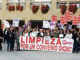 Los sindicatos UGT y CCOO se han concentrado este jueves en la Plaza del Ayuntamiento de Logroño para denunciar "la difícil situación por la que atraviesa la negociación del convenio colectivo de Limpieza de edificios y locales de La Rioja", que afecta a cerca de 2.500 trabajadores en la Comunidad.