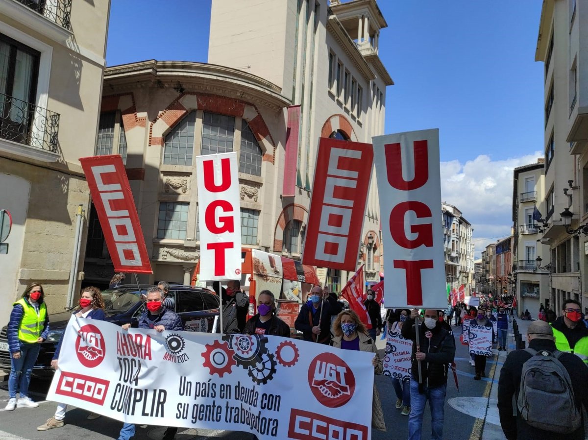 UGT y CCOO La Rioja han vuelto a salir a la calle de forma conjunta este 1 de Mayo, Día del Trabajador, para participar en una manifestación en la que exigen al Gobierno que "retomen la agenda social" y "cumpla con los compromisos adquiridos".