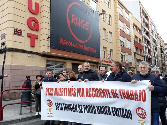 UGT se ha concentrado al mediodía, junto a su sede de la calle Milicias en Logroño, para protestar por la muerte, el pasado lunes, de un trabajador de una empresa de frutas en Murillo de Río Leza. En la misma, el secretario de Salud Laboral, Carlos San Martín, ha reclamado que las administraciones "hagan cumplir, de una vez, la Ley de Prevención de Riesgos Laborales".