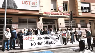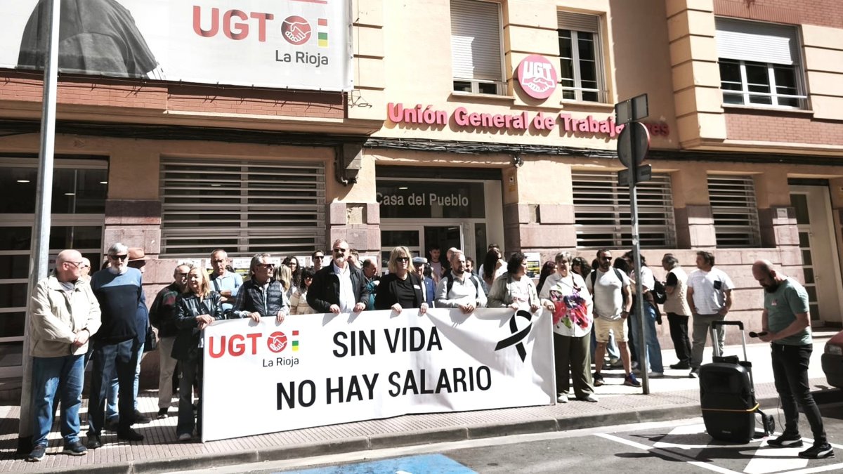 Encabezados por una pancarta en la que se podía leer 'Sin vida no hay salario', los concentrados -entre ellos, el secretario general del sindicato en la comunidad, Jesús Izquierdo- han secundado un minuto de silencio tras escuchar al secretario de Organización de UGT-FICA La Rioja, Rubén Fernández.