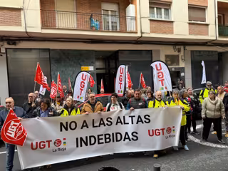 El sindicato UGT de La Rioja ha reclamado este jueves, con una concentración ante la sede en Logroño de la Inspección Médica en la comunidad, un 'No a las altas indebidas'.