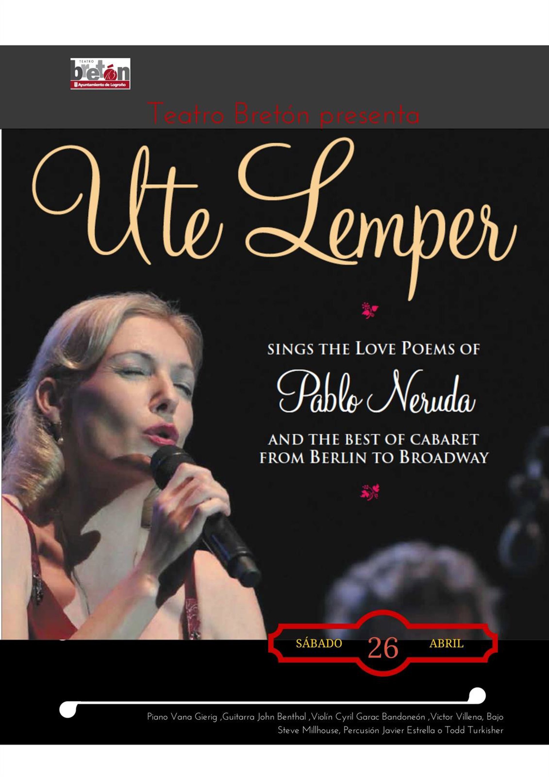 La artista alemana Ute Lemper versionando poemas de amor de Pablo Neruda, la versión del Joglars del 'Coloquio de los perros' de Cervantes, el imprevisible Albert Plá o una Concha Velasco "en plan trágico", interpretando 'Hécuba' de Eurípides, serán algunas de las principales atracciones del programa del Teatro Bretón de Logroño entre los meses de enero y junio de 2014.