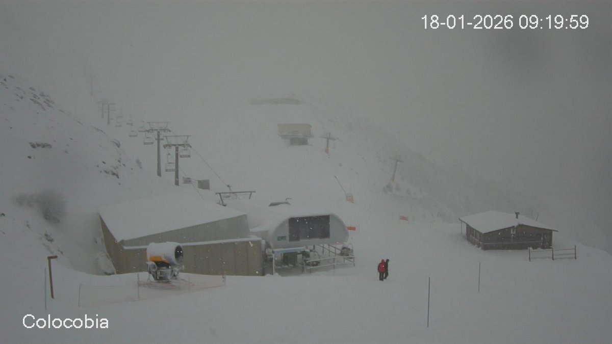 Los accesos hay que realizarlos con cadenas o ruedas de invierno. Los cañones están en producción en la pista de 'Colocobia'.
