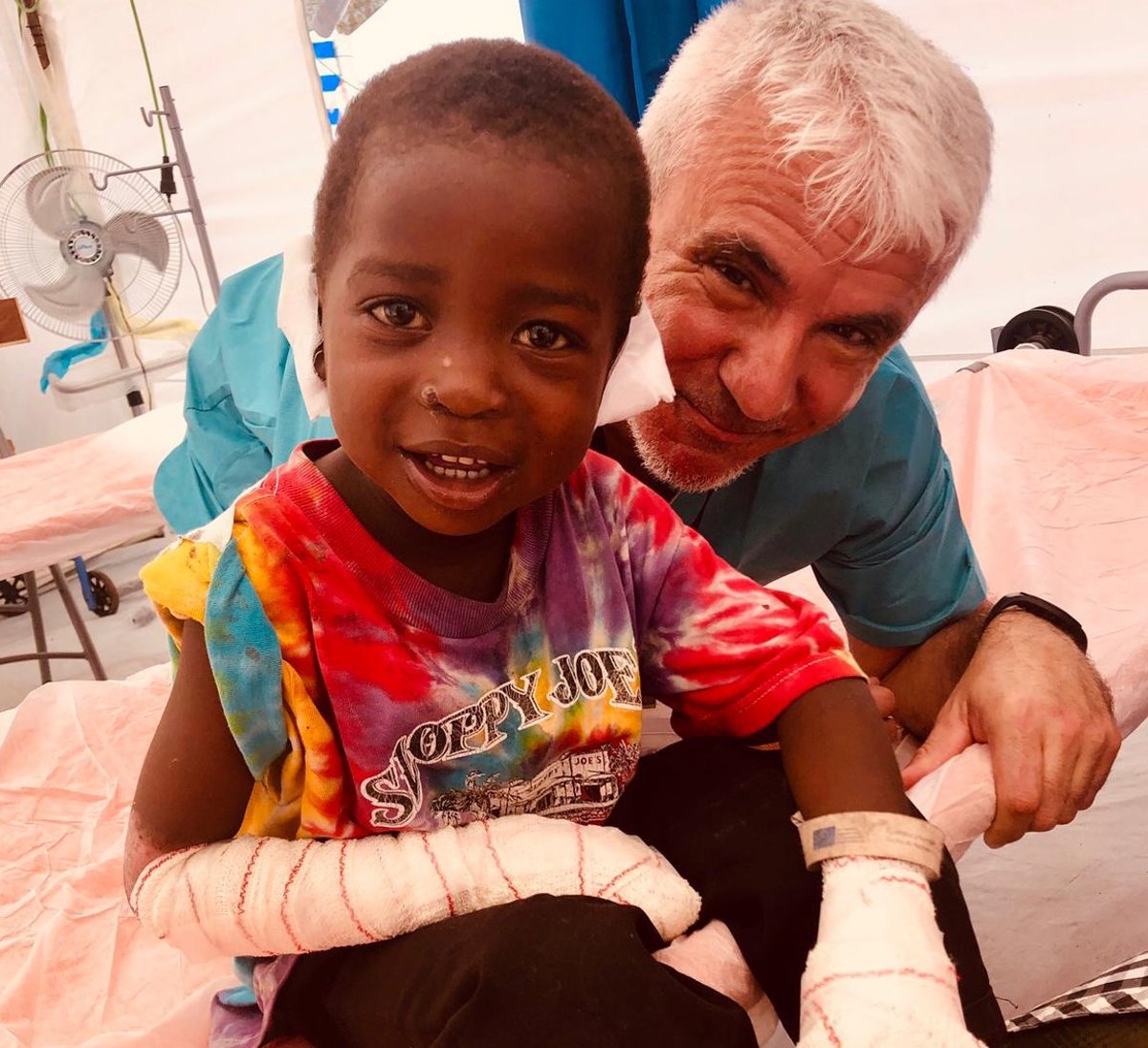 En un todo terreno sin tomas de oxígeno, y mientras las pediatras continuaban estabilizando al paciente, los logistas prepararon el vehículo como si fuera una ambulancia. Mientras, enfermeros, pediatras y anestesistas prepararon un sistema artesanal para conseguir un respirador artificial que mantuviera a la criatura viva durante el traslado. Gracias al trabajo de gran parte del equipo se le dio una oportunidad de vivir al pequeño. "Ese traslado hace vislumbrar un rayo de esperanza dentro de todas las desgracias que nos vienen ocurriendo y los niños que vemos morir", ha explicado Crespo Sabarís.