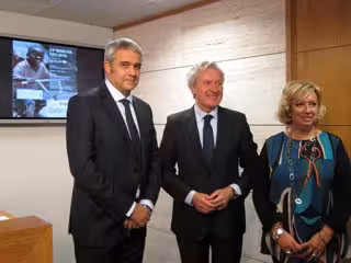El consejero de Presidencia y Justicia, Emilio del Río, el presidente del Comité de UNICEF en La Rioja, Juan Carlos Castroviejo, y la secretaria general técnica de la Consejería de Presidencia y Justicia, Elisa Torrecilla han presentado esta mañana la XXIII Marcha Ciclista UNICEF que se celebra el próximo domingo, 19 de octubre, y que cuenta con la colaboración del Gobierno de La Rioja.