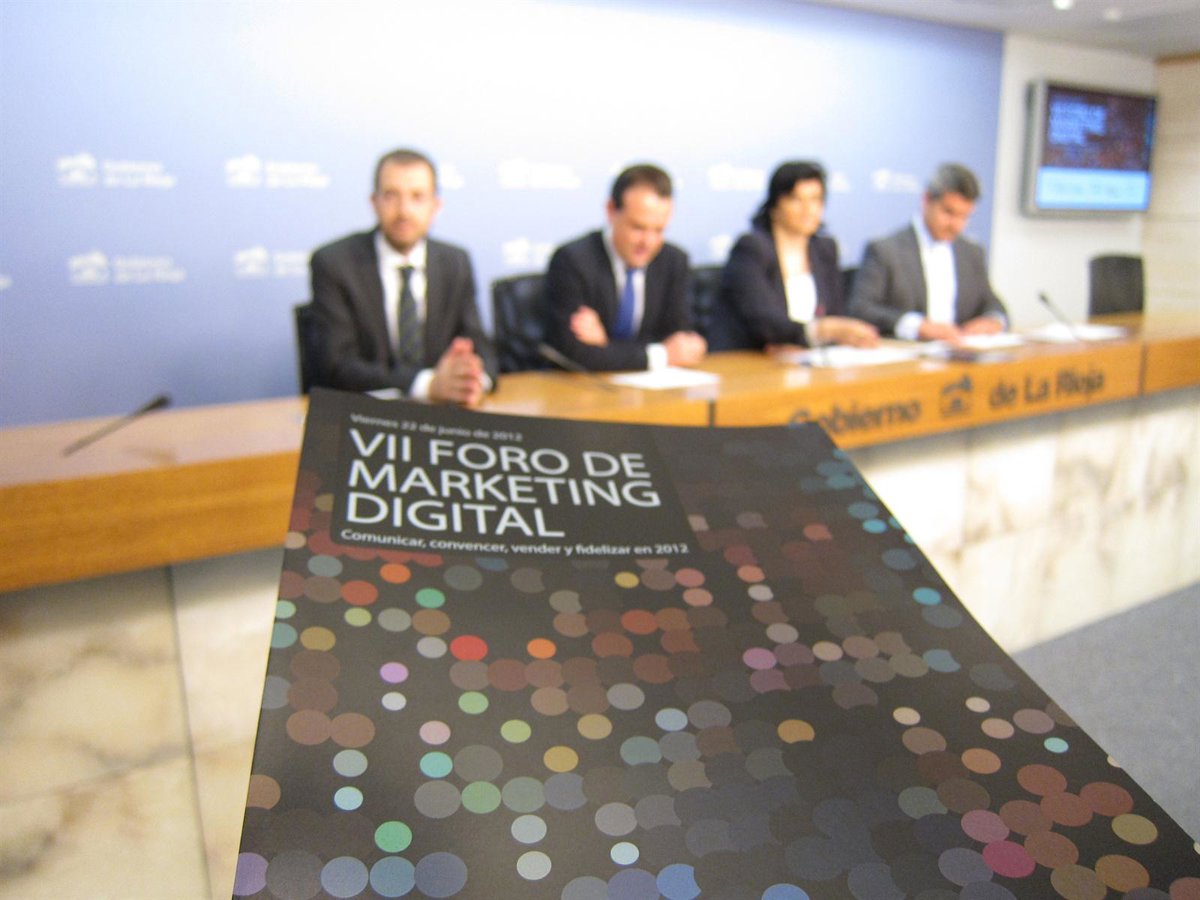 La consejera de Administración Pública y Hacienda, María Concepción Arruga, acompañada por el presidente del Club de Marketing de La Rioja, Ignacio Blanco, el Director Administrativo y Financiero de Arsys, Eduardo Urrestarazu y el director general de Pancorbo, José Luis Pancorbo, han presentado esta mañana la séptima edición del Foro Marketing Digital que se celebrará en la sede del Club de Marketing en Logroño el próximo 22 de junio. En este encuentro se abordarán las nuevas oportunidades que ofrecen las TIC para generar negocio y ganar competitividad en las empresas y administraciones públicas.