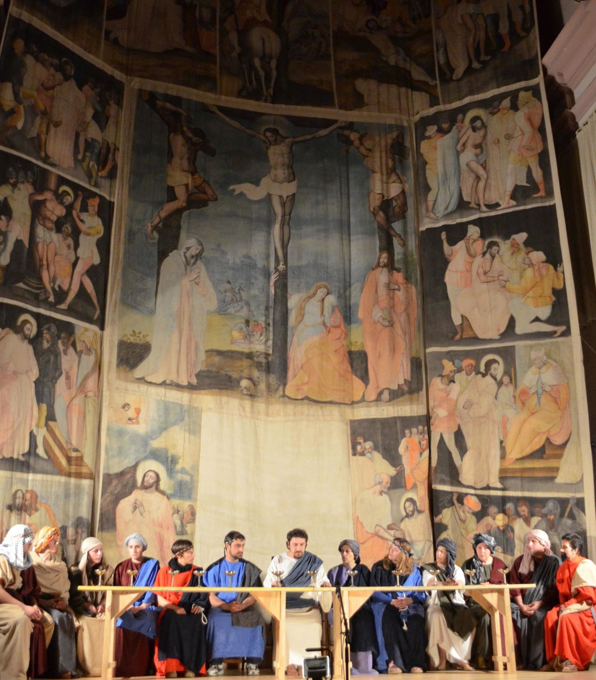 La Sarga, esa gran pieza de lino que se convierte en un decorado único para esta represntación no solo muestra las escenas de la Pasión sino que es una muestra de su tiempo. Es muy moderna si se piens en esa época.
