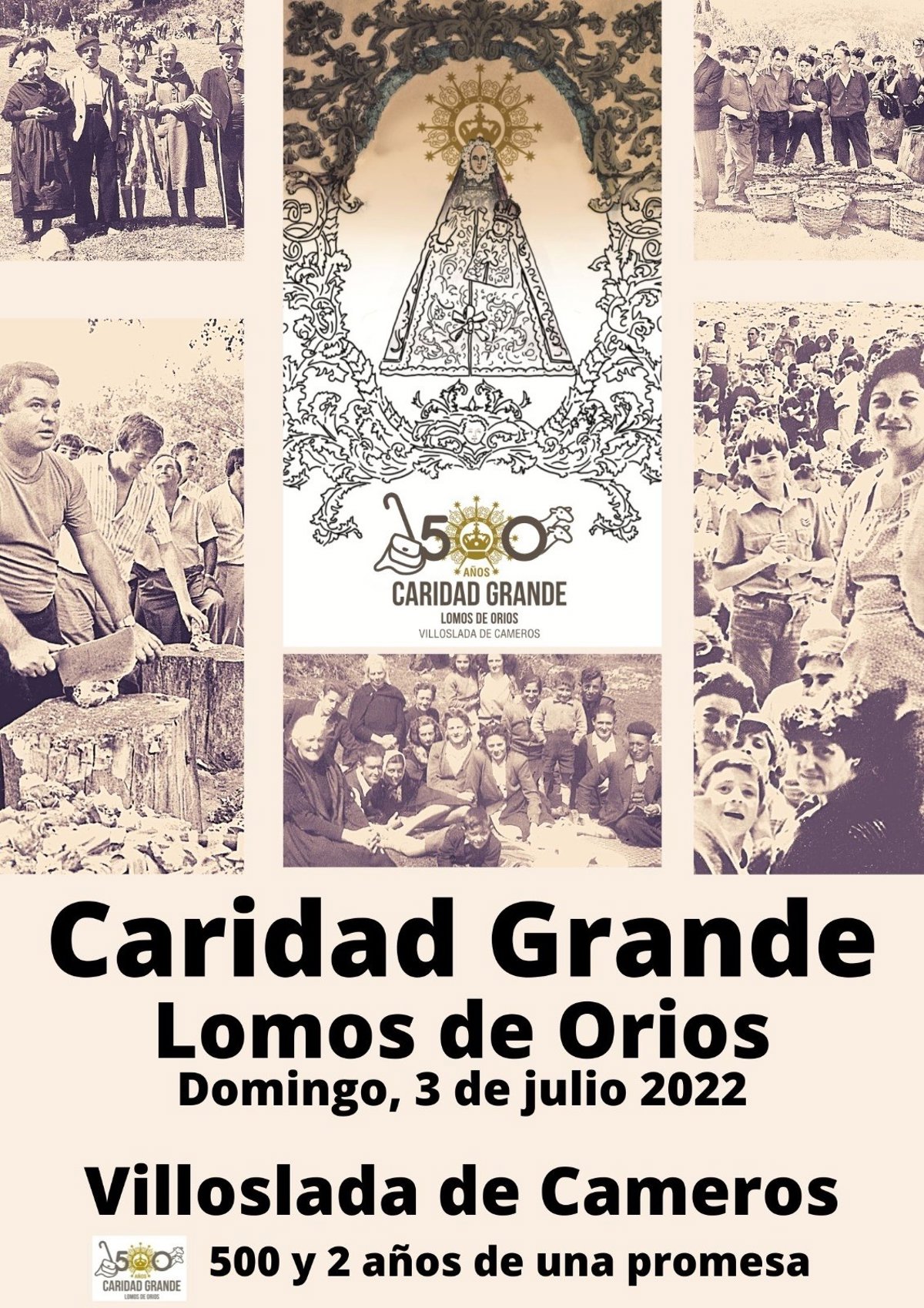 El marco de este 500 (y 2) aniversario, y las especiales circunstancias que han obligado a su aplazamiento, se han considerado los adecuados para plantear una renovación de la promesa que tanto tiempo atrás realizaron los antepasados, que necesariamente partirá de la devoción hacia la Virgen de Lomos de Orios y lo que representa en la vertebración de la sociedad villosladense, camerana y serrana.