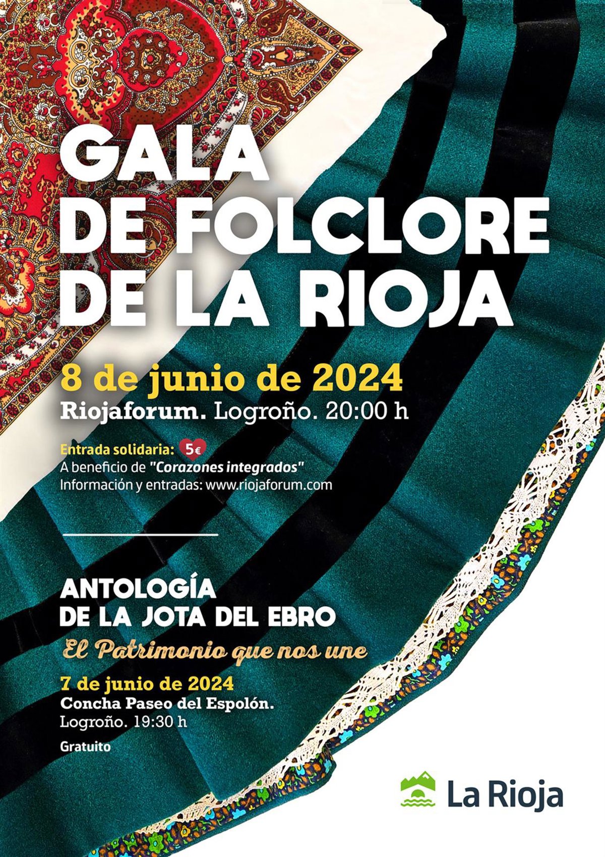 Las entradas para asistir a la Gala del Folclore de La Rioja tienen un precio único de 5 euros y se pueden adquirir en las páginas web: www.larioja.org/diadelarioja y www.riojaforum.com