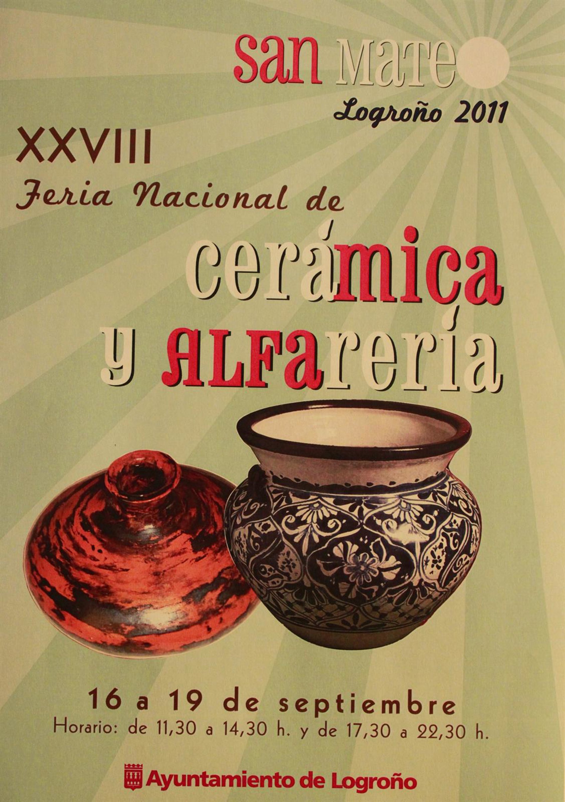 Las fiestas de San Mateo 2011 acogerán la XXVIII edición de la Feria Nacional de Cerámica Nacional y Alfarería, que este año contará un 70 por ciento menos de presupuesto y con la que participarán 18 ceramistas y 18 alfareros, según han explicado esta mañana el concejal de Festejos, Pedro Muro y la representante de la Asociación Riojana de Ceramistas, Asunción Manero.