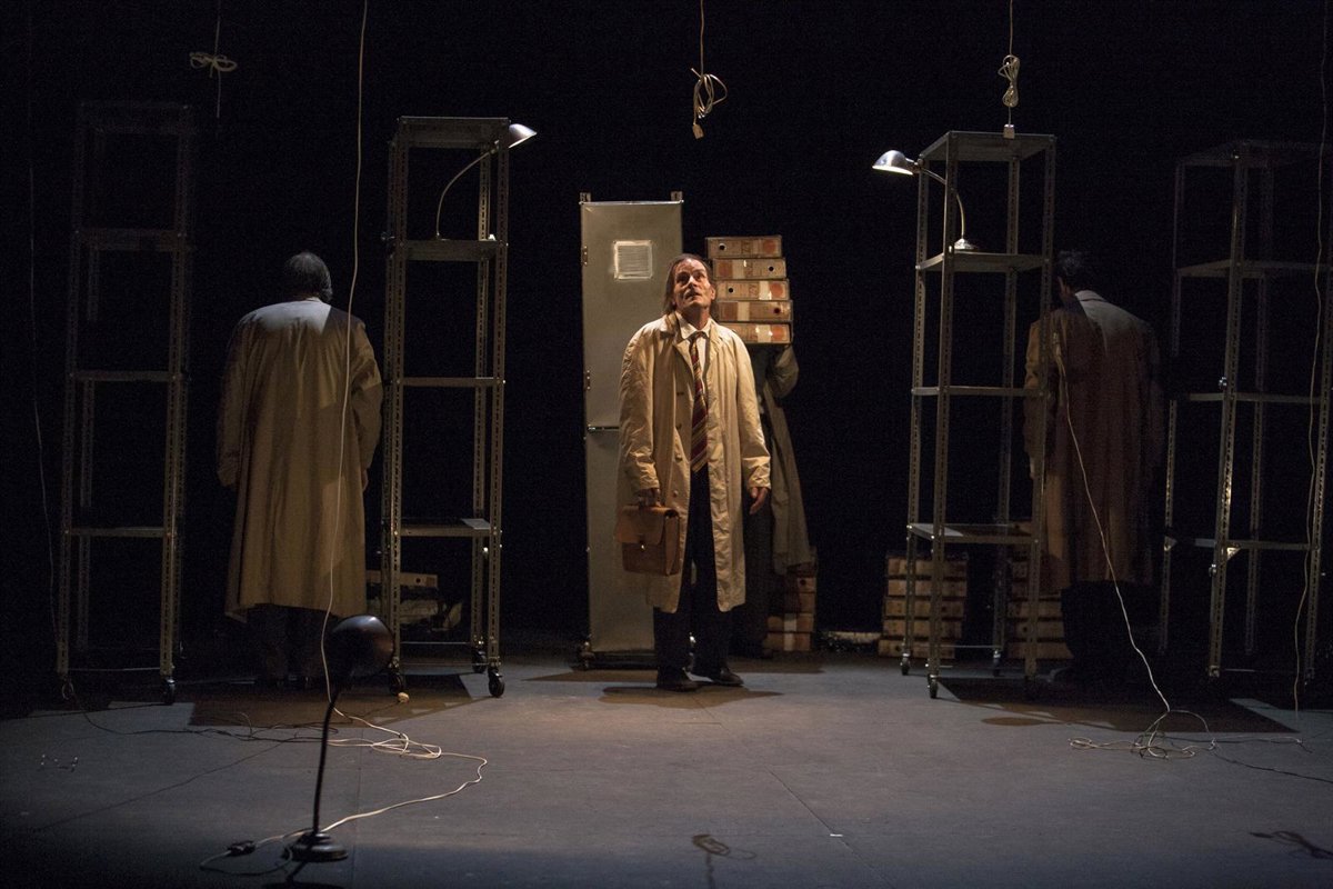 En escena, cuatro actores, con uno central, el vallisoletano Javier Semprún, "que, cuando se incorporó a la compañía, preguntó si tenía que hablar en andaluz o en español, y yo le contesté que hablara con la verdad". Junto a los intérpretes, cuatro archivadores antiguos, cuatro estanterías y cuatro flexos son el único escenario.