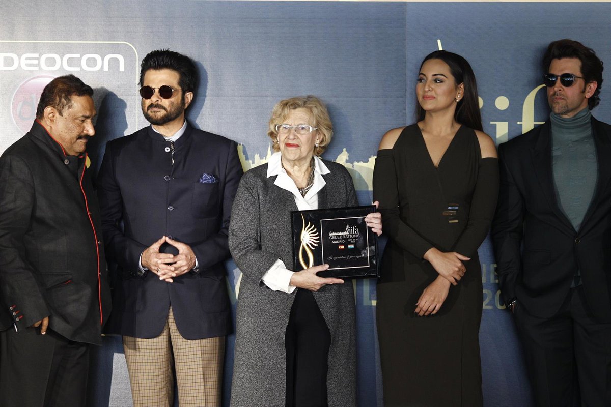 Carmena con los actores de Bollywood en la IIFA Weekend and Awards