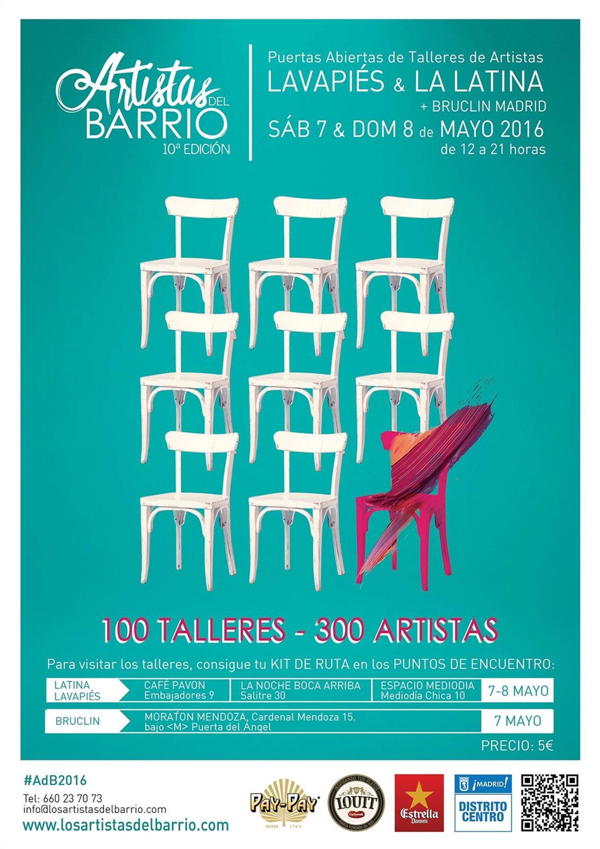 Para conocer la ubicación de los talleres los interesados deberán dirigirse a uno de los cuatro puntos de encuentro en los que podrán adquirir por 5 euros un kit compuesto por un mapa, un catálogo con información de cada artista participante y una chapa para ser reconocido como público.