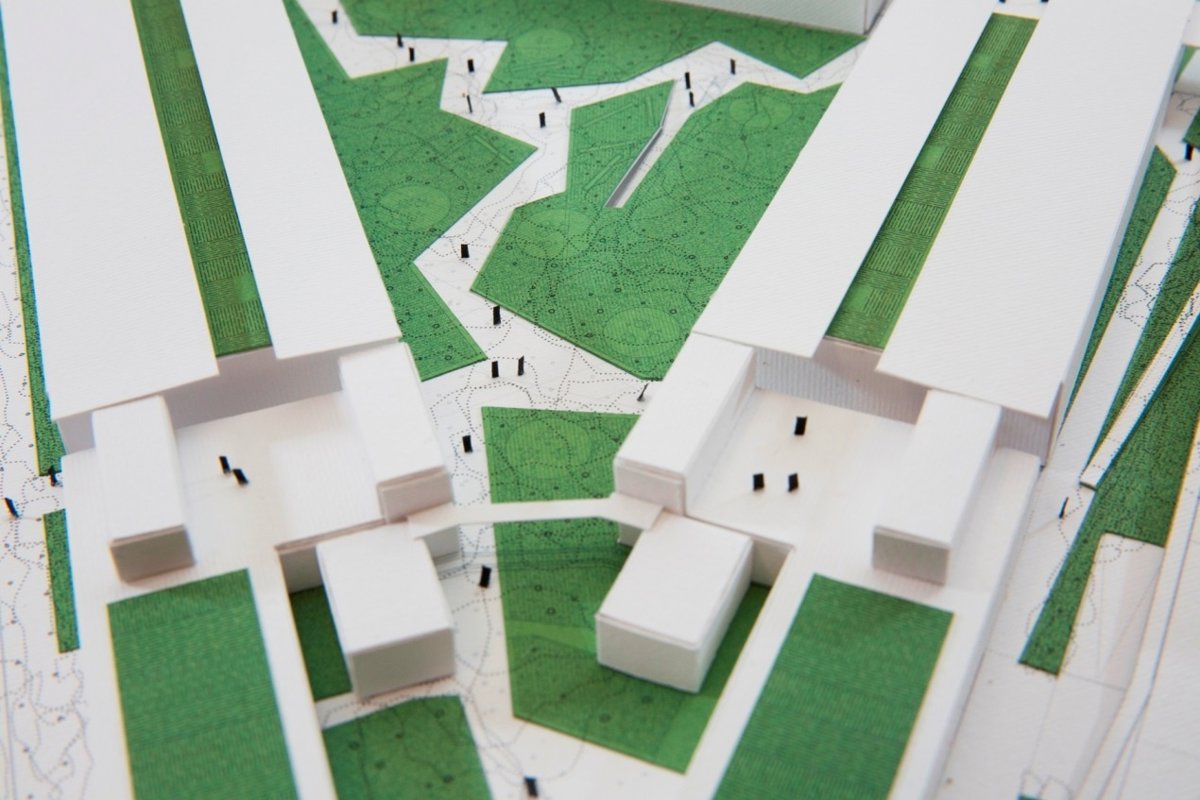 Los servicios de la Administración municipal irán ubicados en las tres naves centrales, donde está previsto que trabajen unos 1.900 funcionarios. Se incorporarán huertos urbanos, que se instalarán en las cubiertas de los elementos destinados a las entidades.