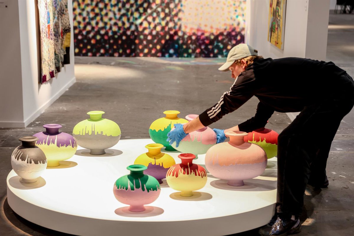Archivo - Una persona coloca un jarrón dentro de una galería un día antes de la inauguración de ARCO 2023, en Feria de Madrid IFEMA de Madrid, a 21 de febrero de 2023, en Madrid (España). ARCO es la Feria Internacional de Arte Contemporáneo de España, una - Ricardo Rubio - Europa Press - Archivo