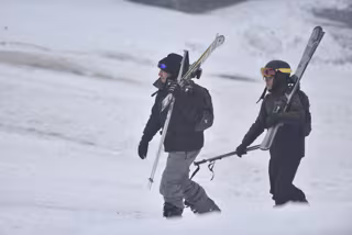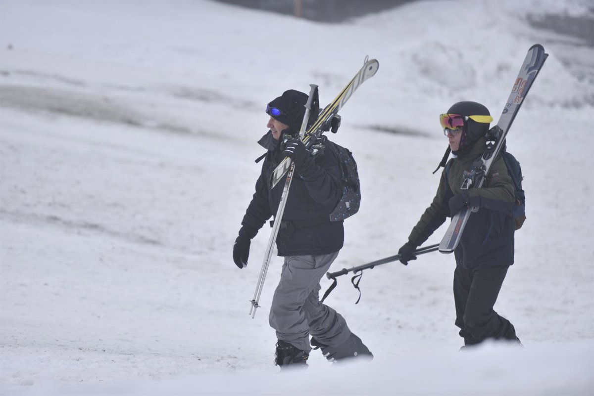Archivo - Dos personas portan sus esquís. - Verónica Lacasa - Europa Press - Archivo