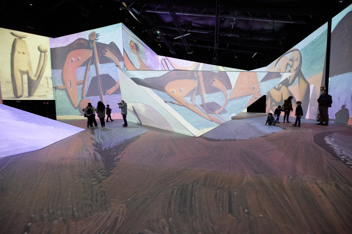 La muestra se divide en una primera parte introductoria "que pone en contexto sobre el autor y su trayectoria, abarcando la época surrealista, la cubista o los periodos azul y rosa, que sirven para disfrutar mejor una segunda parte inmersiva" en la que se proyectan los cuadros.