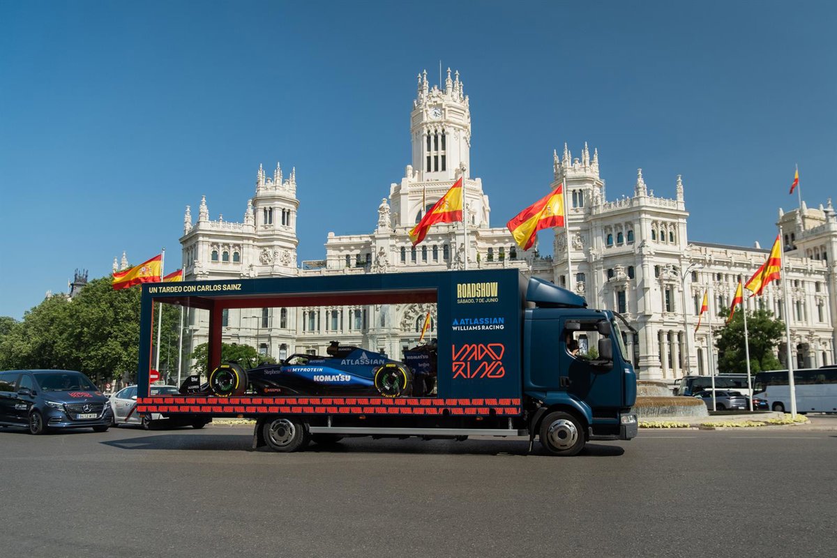 El vehículo Williams FW45 ha protagonizado una "imagen inédita" al recorrer en un camion acristalado, los lugares emblemáticos de la ciudad como Cibeles. - IFEMA
