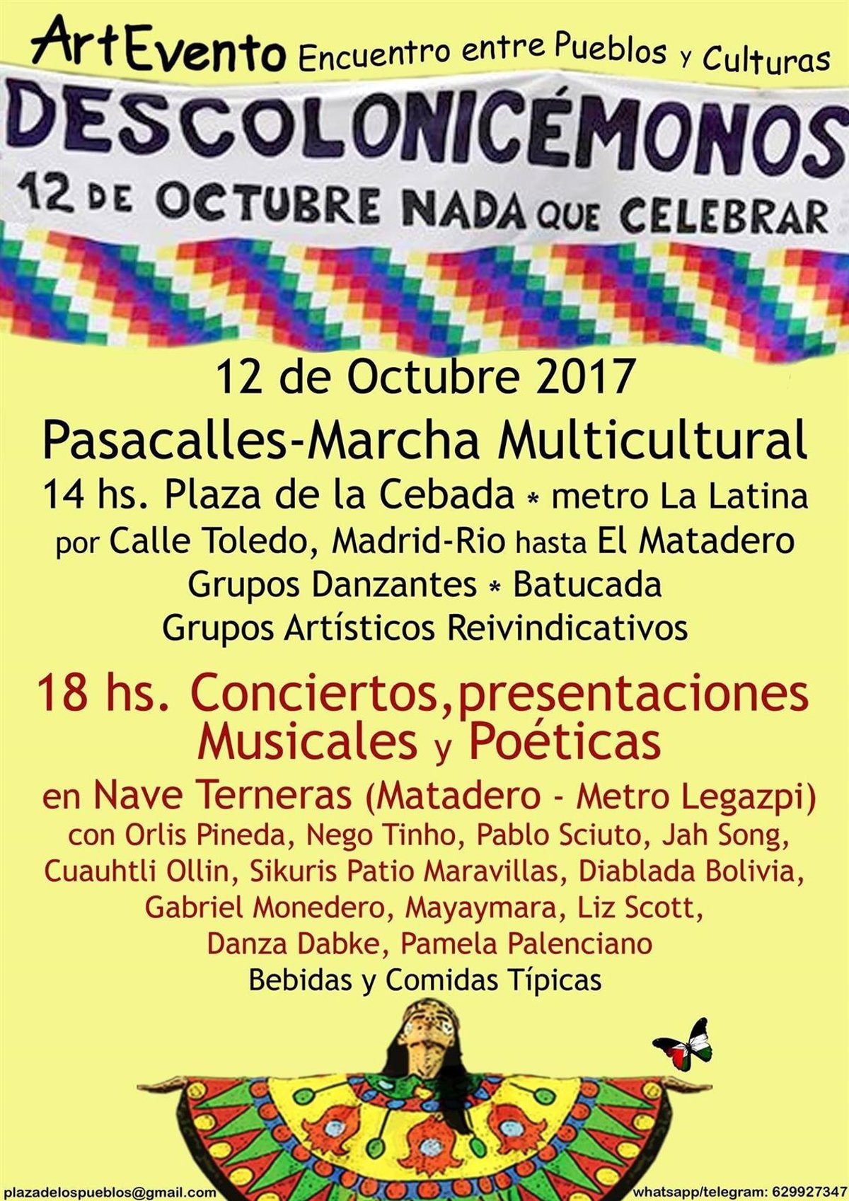 Por sexto año consecutivo, los cantos y bailes de pueblos originarios de todo el mundo cruzarán el barrio de La Latina y Madrid Río hasta llegar a un evento musical en El Matadero. "Sin embargo, no se trata de una fiesta, sino un espacio para el reconocimiento de la soberanía y los derechos de todos los pueblos del mundo que han sido o continúan siendo colonizados", han indicado los organizadores.