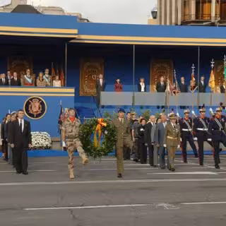 Junto a los Reyes y los Príncipes de Asturias asistirán a la parada el Gobierno en pleno, las más altas autoridades del Estado, autoridades autonómicas y mandos militares de los tres ejércitos y de la Guardia Civil.